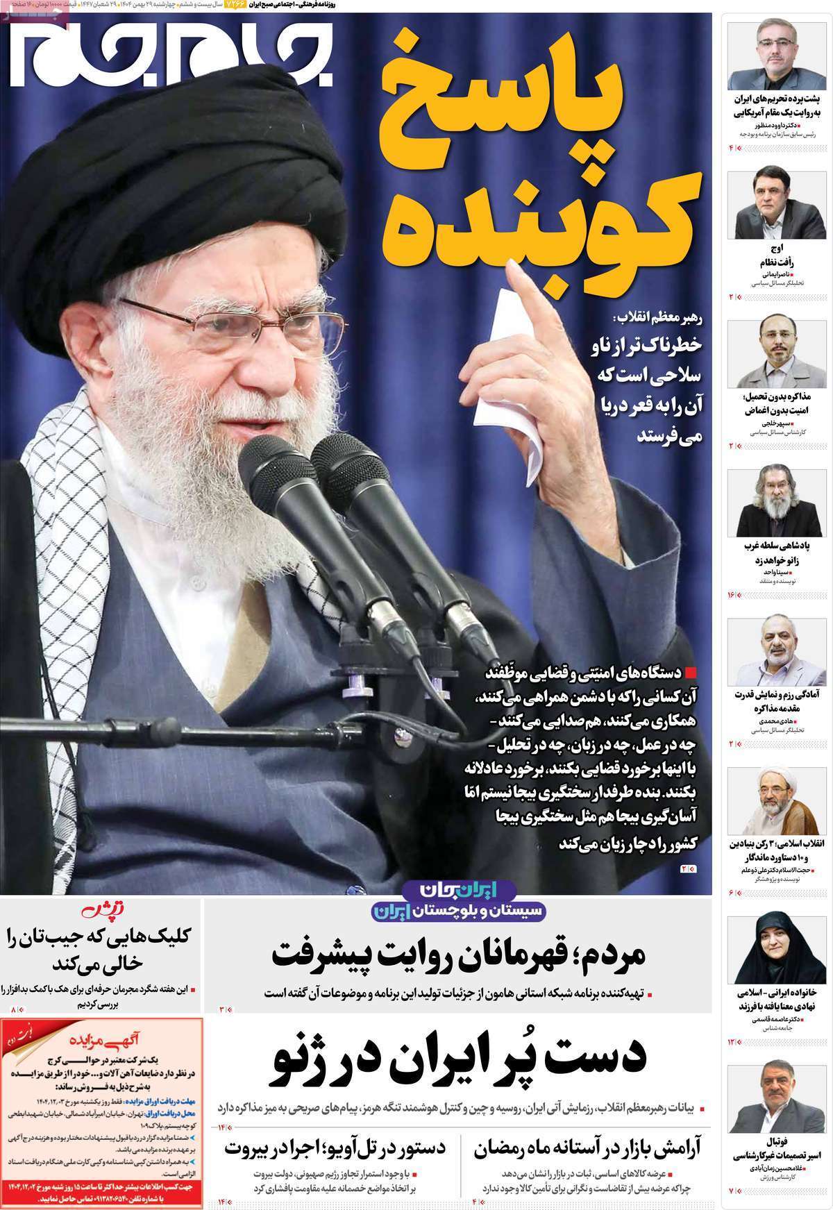 صفحه نخست روزنامه‌های چهارشنبه ۲۹ بهمن ماه ۱۴۰۴