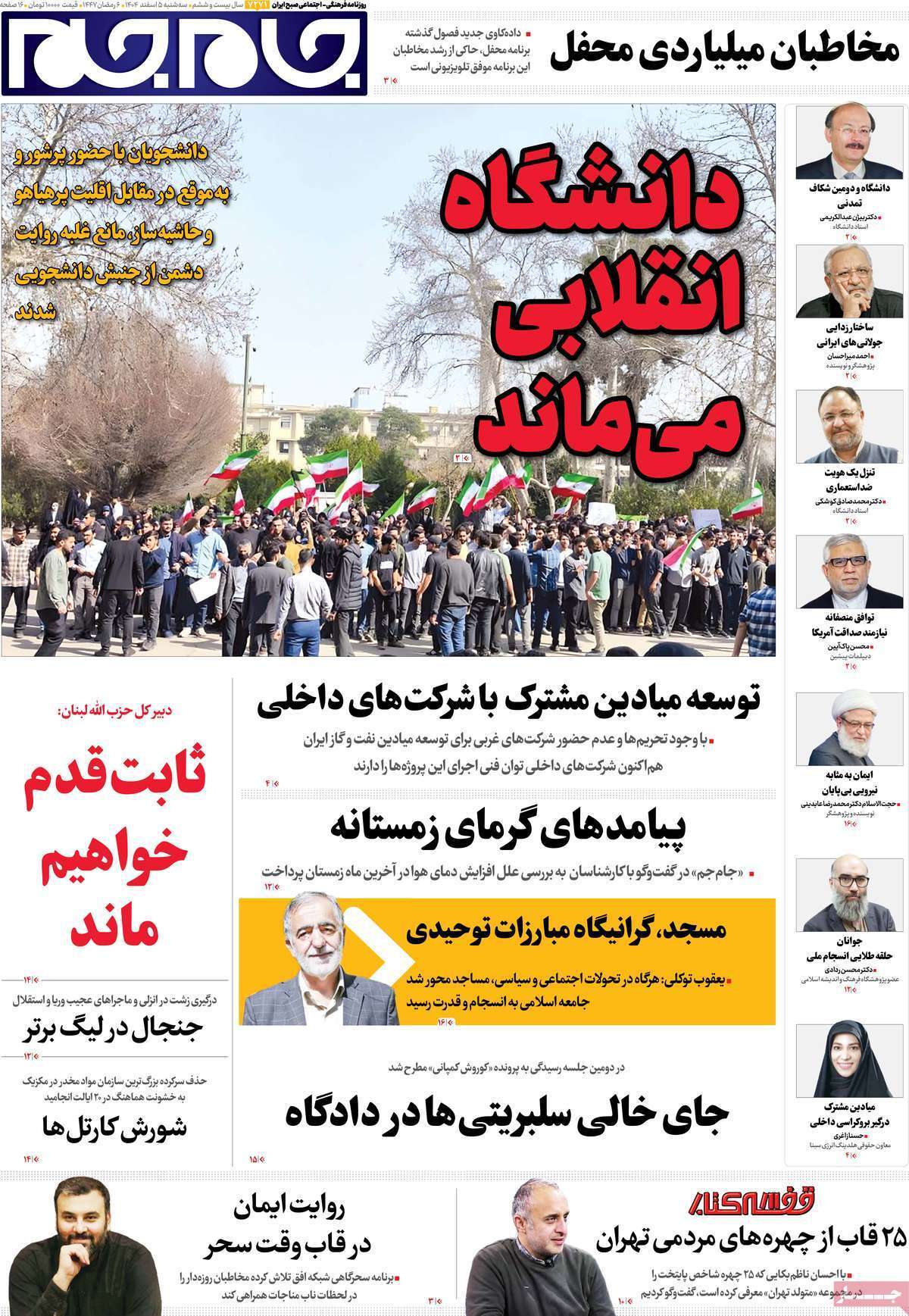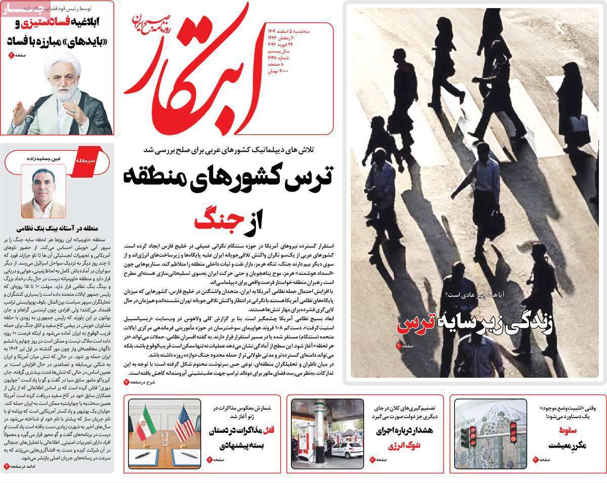 صفحه نخست روزنامههای سهشنبه ۵ اسفندماه ۱۴۰۴