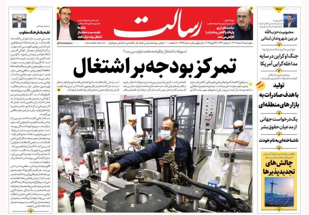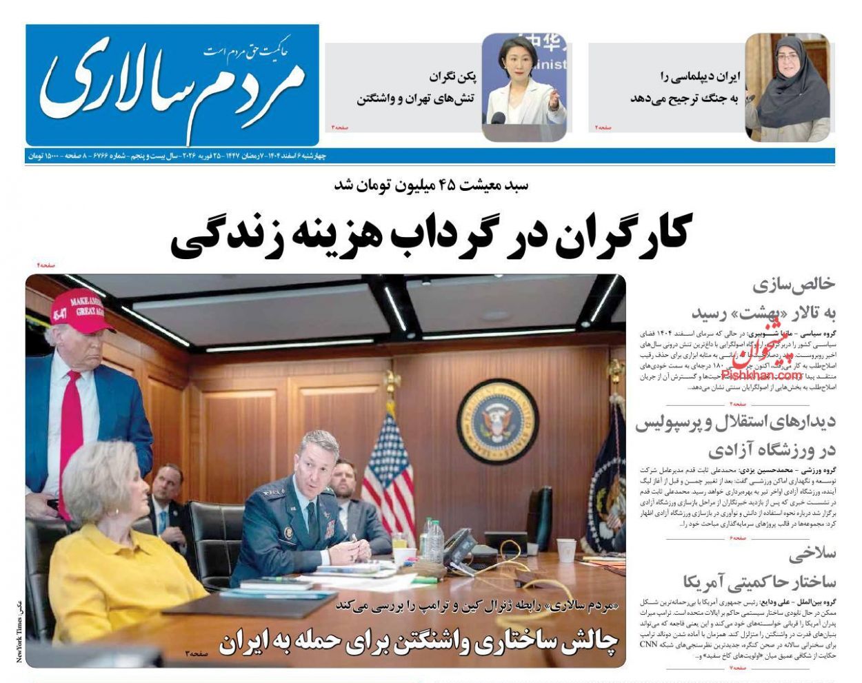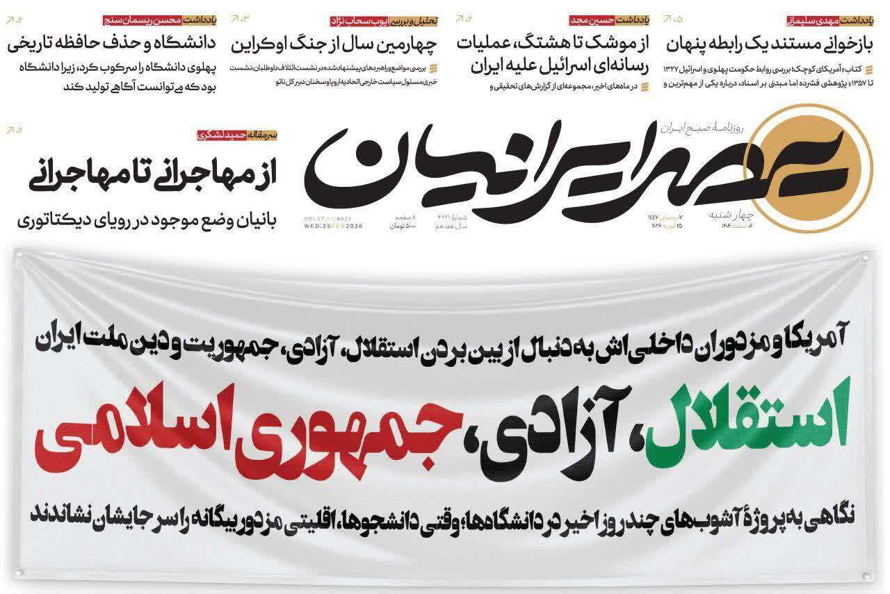 صفحه نخست روزنامههای چهارشنبه ۶ اسفندماه ۱۴۰۴