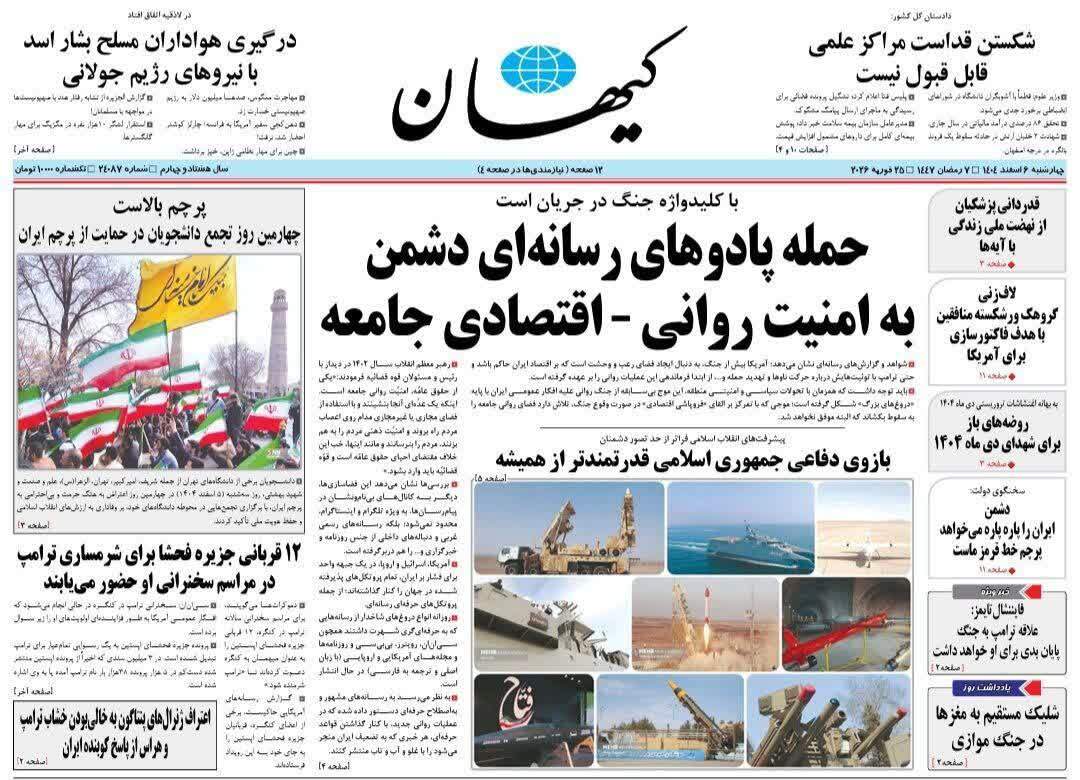 صفحه نخست روزنامههای یکشنبه سوم اسفندماه ۱۴۰۴