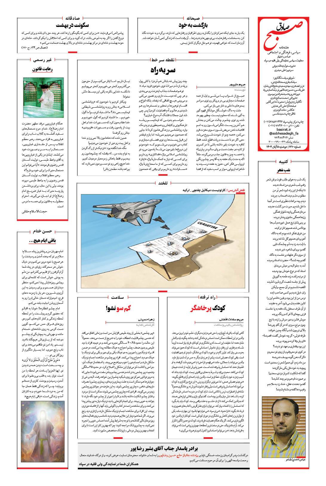 صبح صادق - شماره 1210 |يکشنبه ۰۴ آبان ۱۴۰۴ - شماره ۱۲۱۰