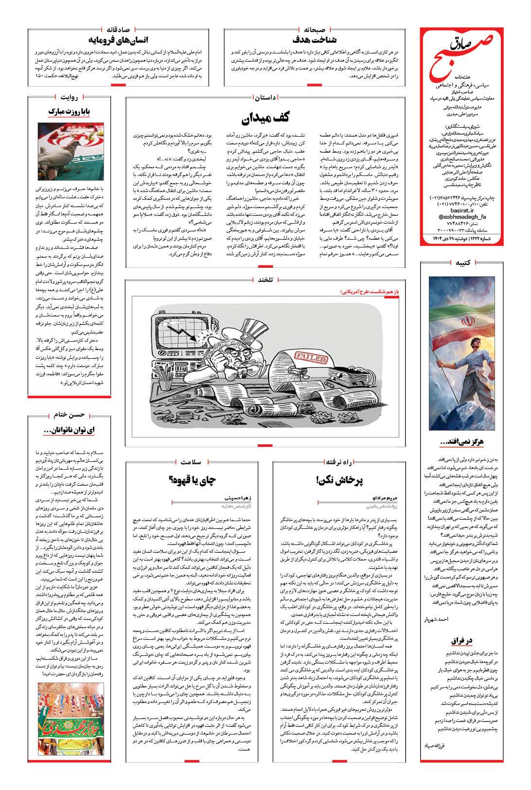 صبح صادق - شماره 1222 |دوشنبه ۲۹ دی ۱۴۰۴ - شماره ۱۲۲۲
