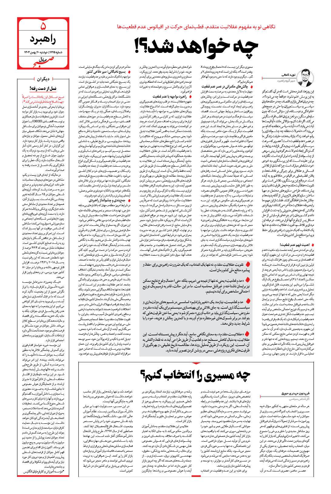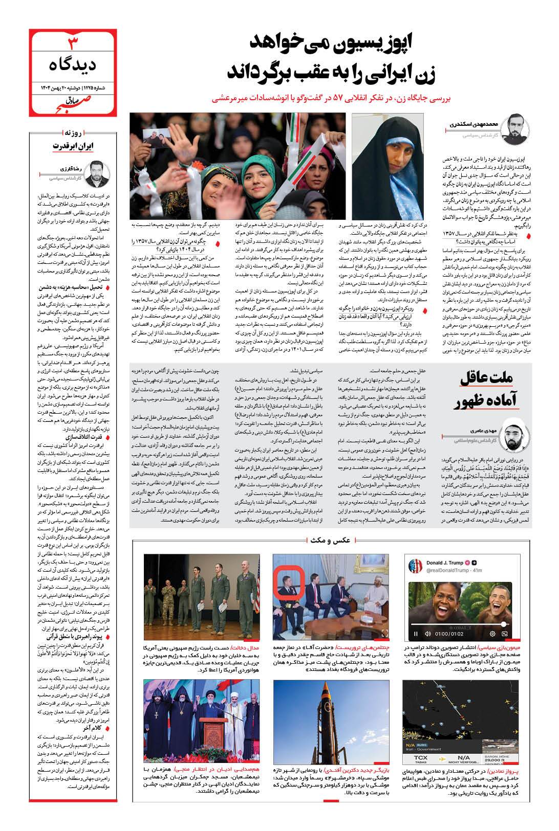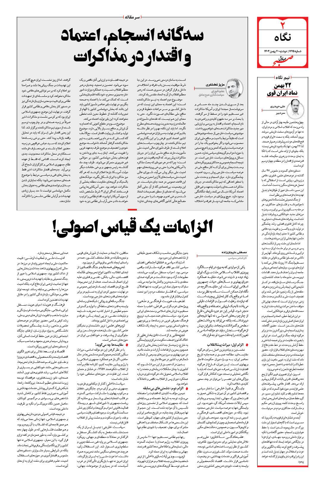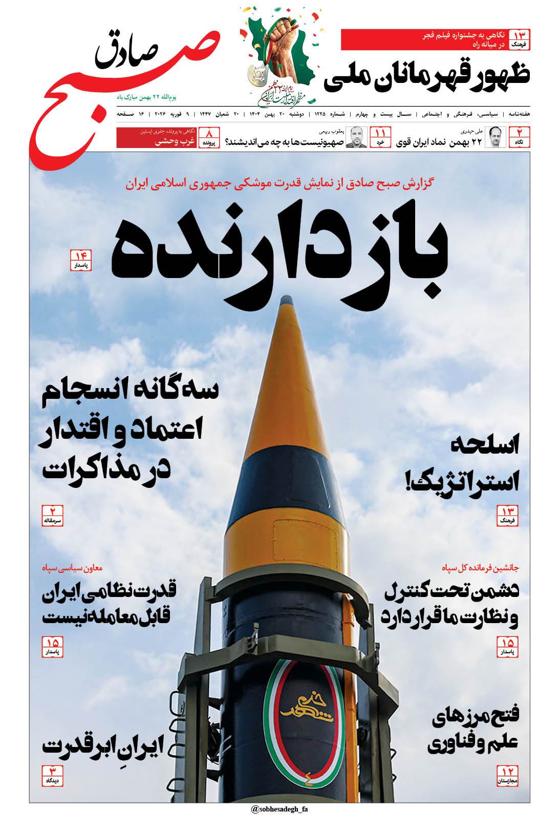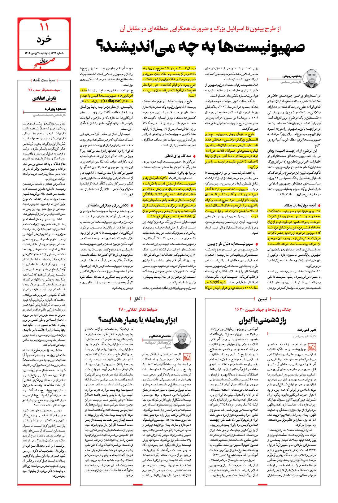 صبح صادق - شماره 1225 |يکشنبه ۱۹ بهمن ۱۴۰۴ - شماره ۱۲۲۵