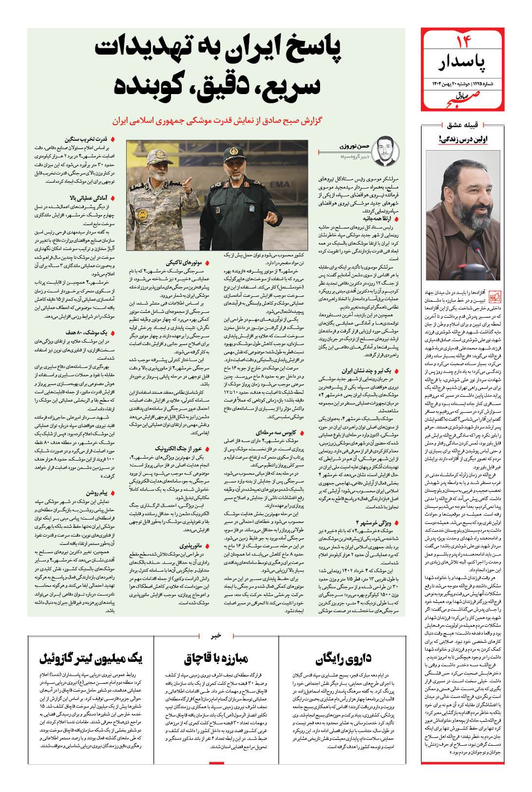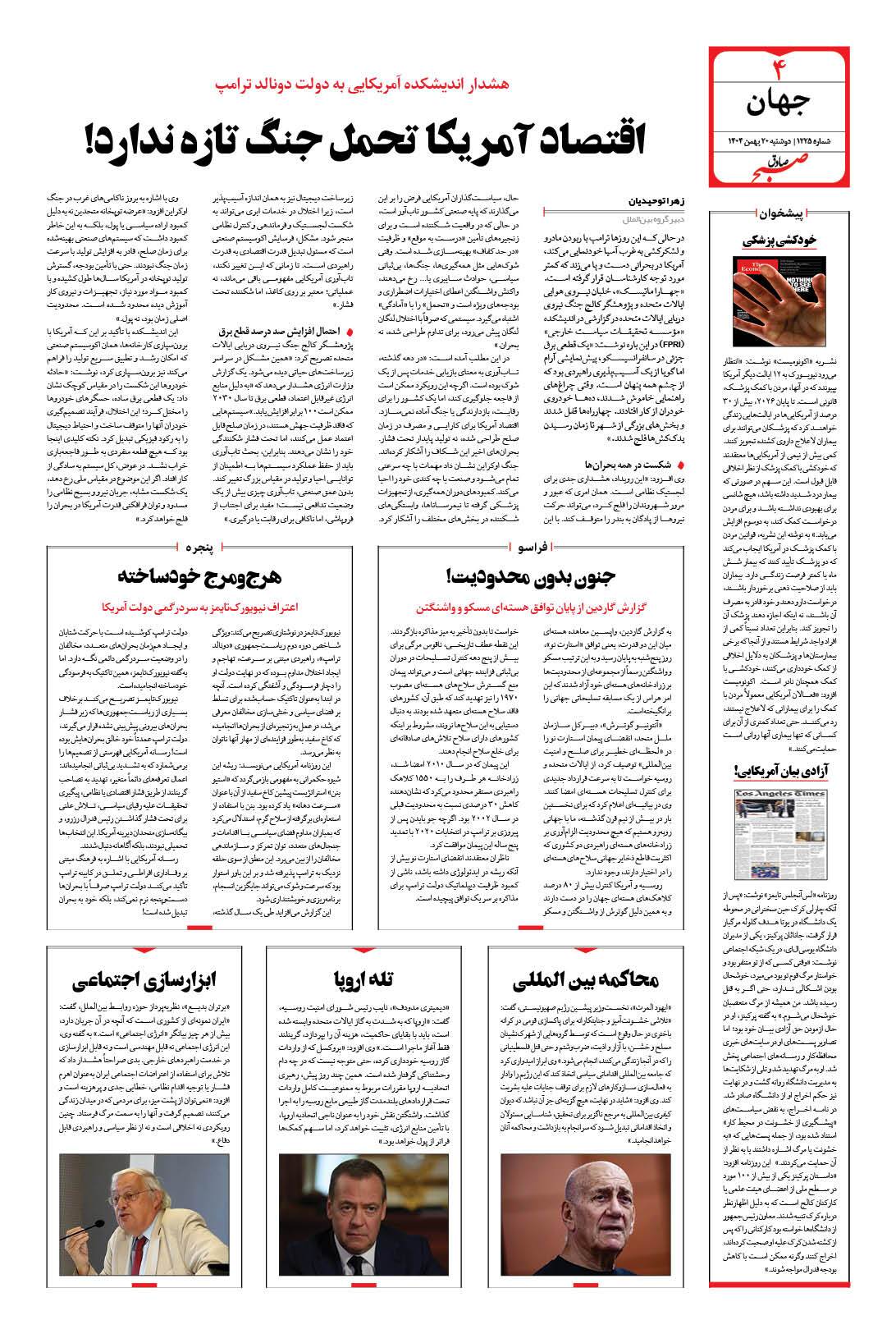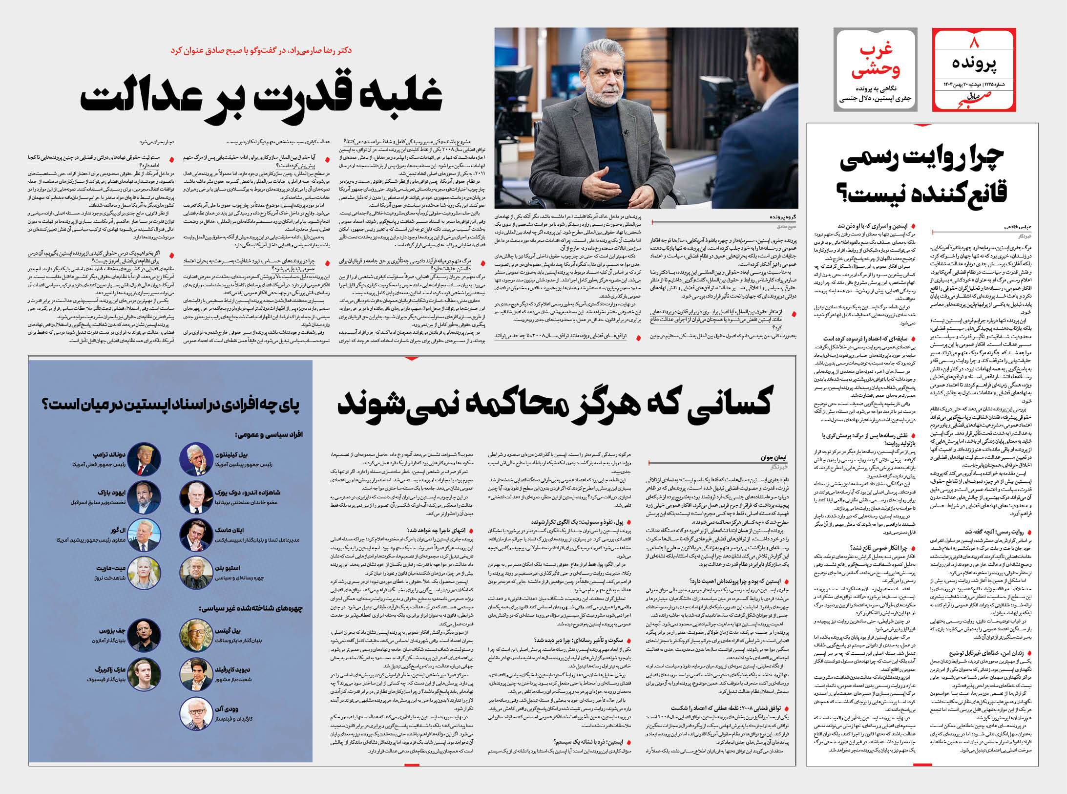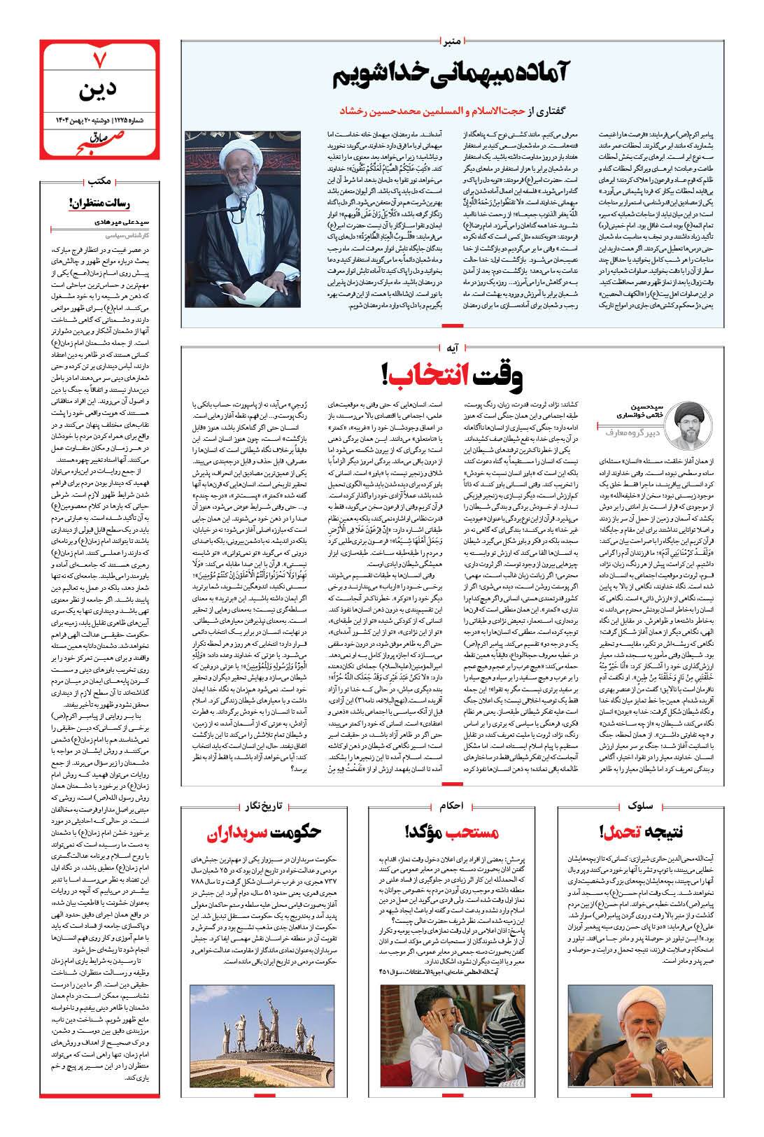 صبح صادق - شماره 1225 |يکشنبه ۱۹ بهمن ۱۴۰۴ - شماره ۱۲۲۵