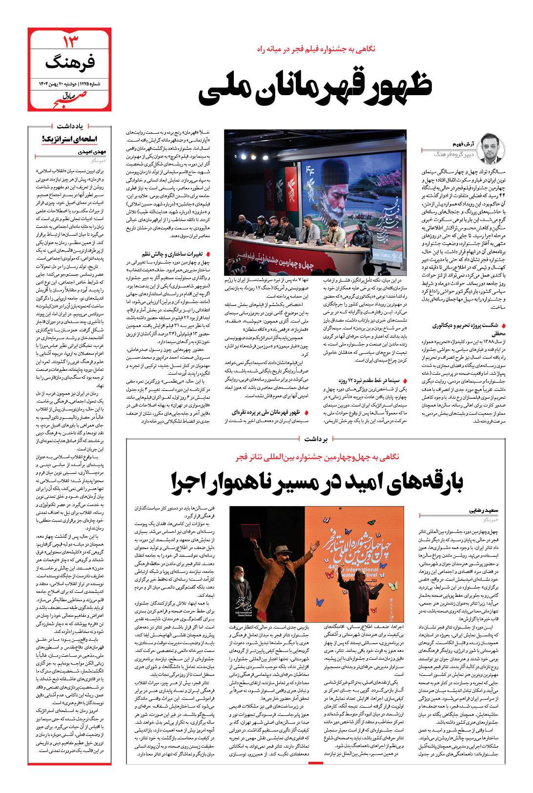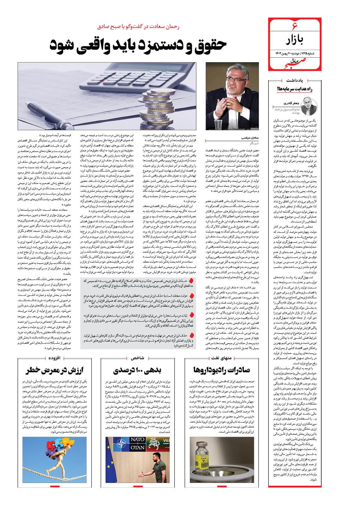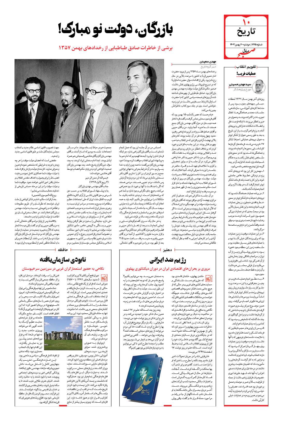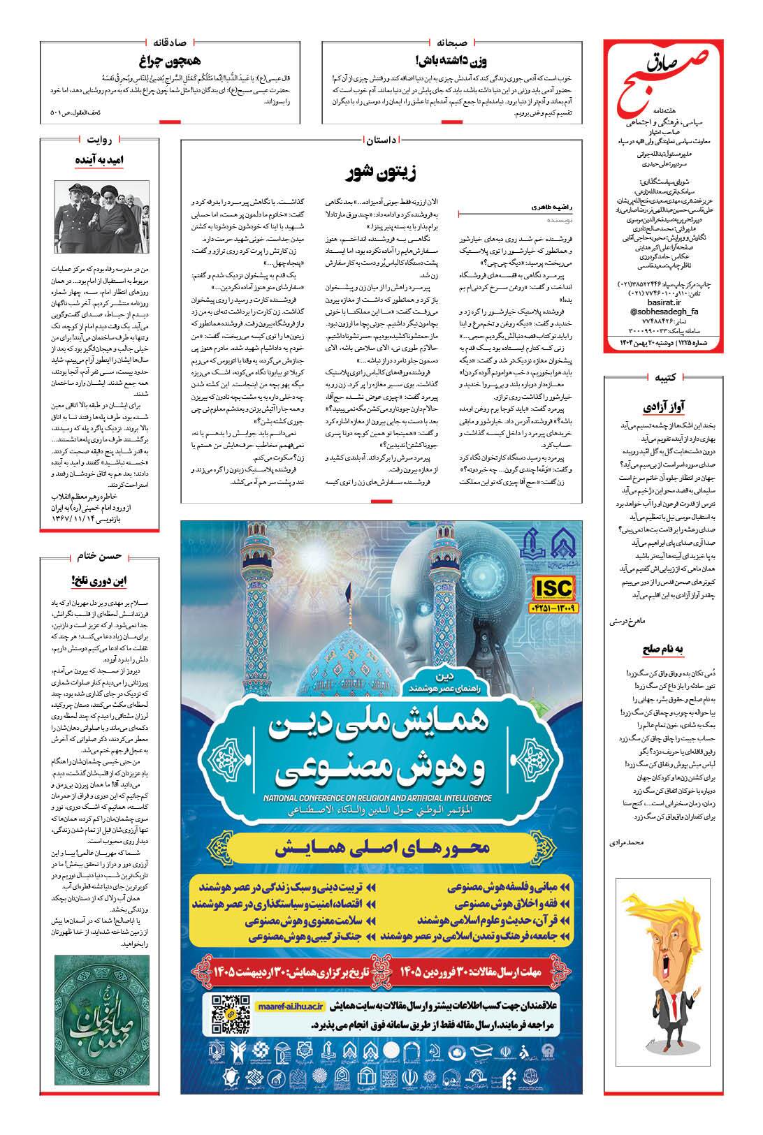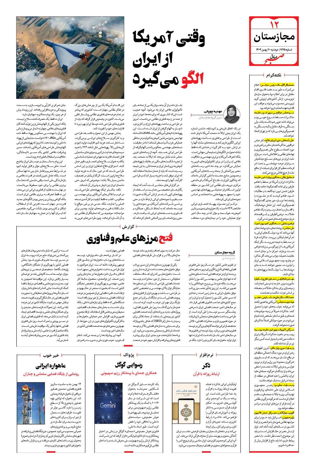 صبح صادق - شماره 1225 |يکشنبه ۱۹ بهمن ۱۴۰۴ - شماره ۱۲۲۵