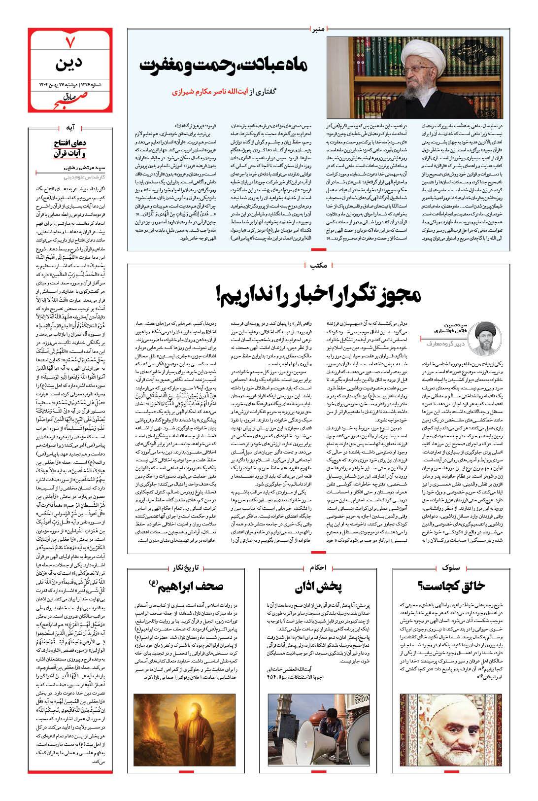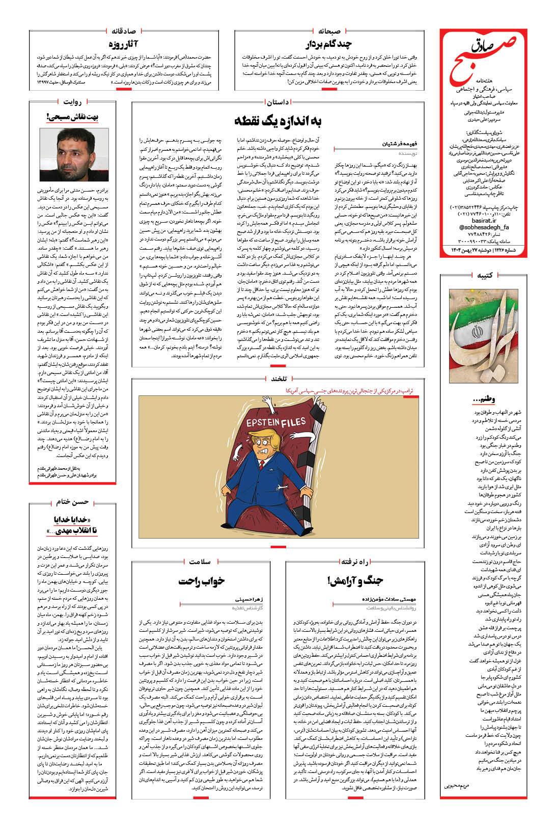 صبح صادق - شماره 1226 |دوشنبه ۲۷ بهمن ۱۴۰۴ - شماره ۱۲۲۶